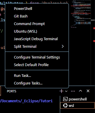 Select WSL: Ubuntu from the Terminal Dropdown: