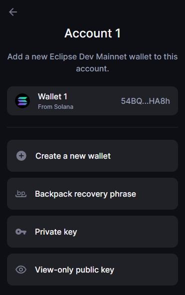 You are done creating a new wallet within backpack for Eclipse mainnet.